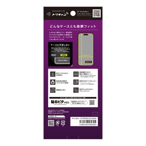 トリニティ iPhone 17 / 16 Pro ケースとの相性抜群 ゴリラガラス 反射防止 画面保護強化ガラス simplism TR-IP25M2-GLS-GOAG 【返品種別A】
