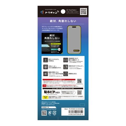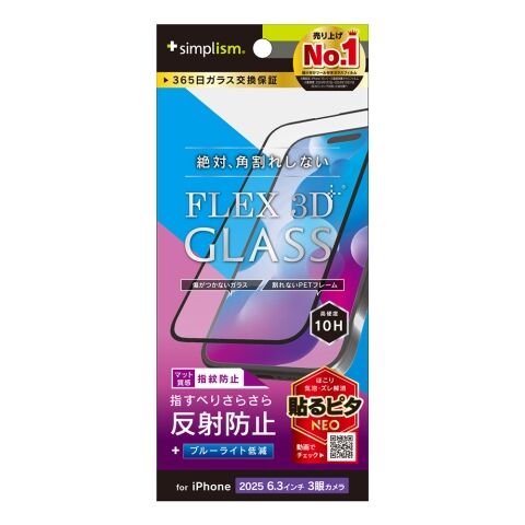 トリニティ iPhone 17 Pro用 [FLEX 3D] 反射防止 黄色くないブルーライト低減 複合フレームガラス ブラック simplism TR-IP25M3-G3-B3AGBK 【返品種別A】