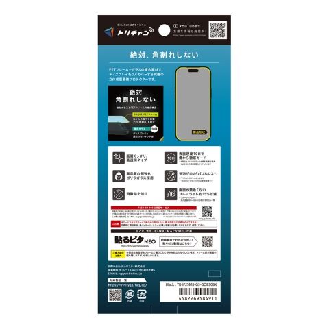 トリニティ iPhone 17 Pro [FLEX 3D] ゴリラガラス 黄色くないブルーライト低減 複合フレームガラス ブラック simplism TR-IP25M3-G3-GOB3CBK 【返品種別A】