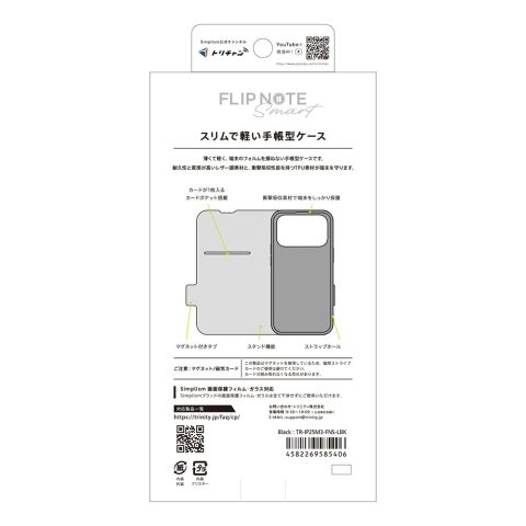 トリニティ iPhone 17 Pro [Smart FlipNote] 薄型スマートフリップノートケース ブラック simplism TR-IP25M3-FNS-LBK 【返品種別A】