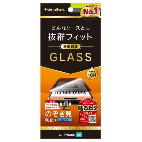 トリニティ iPhone Air用 ケースとの相性抜群 のぞき見防止 画面保護強化ガラス 光沢 simplism TR-IP25L1-GLS-LPVCC 【返品種別A】