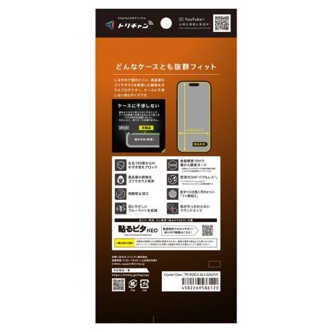 トリニティ iPhone 17 Pro Max ケースとの相性抜群 ゴリラガラス のぞき見防止 画面保護強化ガラス 光沢 simplism TR-IP25L3-GLS-GOLPVC 【返品種別A】