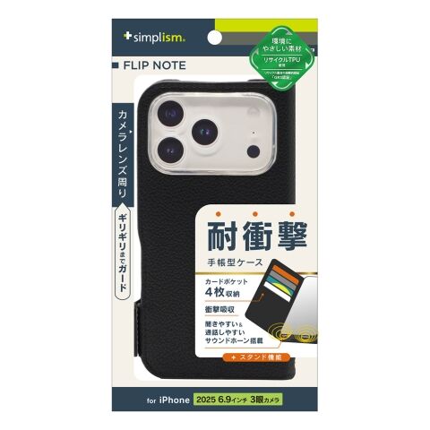 トリニティ iPhone 17 Pro Max [FlipNote] 耐衝撃フリップノートケース ブラック simplism TR-IP25L3-FN-SHBK 【返品種別A】