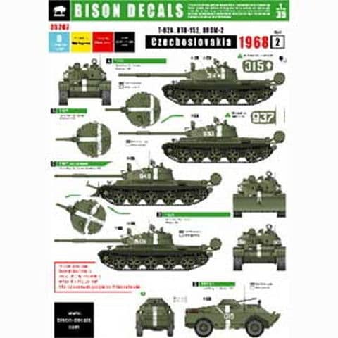 BISON DECALS 1/35 チェコスロバキア 1968(プラハの春) #2 T-62,BRDM-2,BTR-152 デカールセットです。