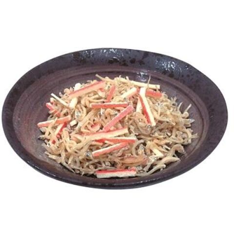 ■原材料:いわし類の稚魚、食塩、カニカマ【タラ(すり身)、乳糖、食塩、馬鈴薯澱粉、調味料(アミノ酸等)、増粘多糖類、紅麹色素、香料(原材料の一部に小麦、カニを含む)】