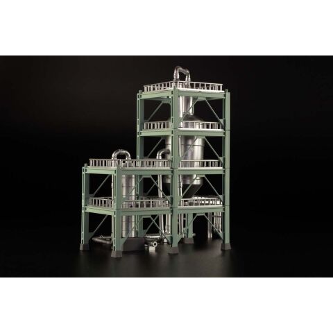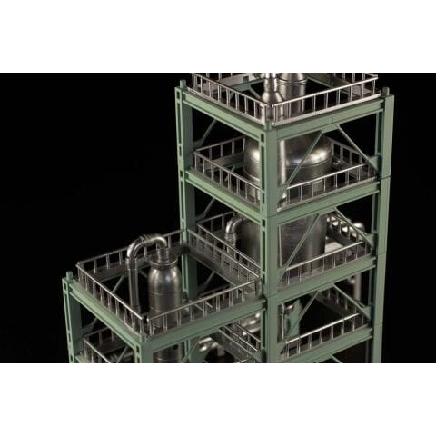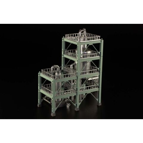 ・鉄骨と精製タンクはそれぞれのカラーで色分け済み。貯蔵タンクと同色のライトグリーンの鉄骨で統一感ある施設を再現可能。