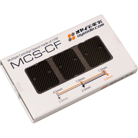 お手持ちのカートリッジとヘッドシェルとの間に予め“MCS-CF”を必要数挟み込んでおくことで、カートリッジをベストなセッティングで即座にご使用いただけます。