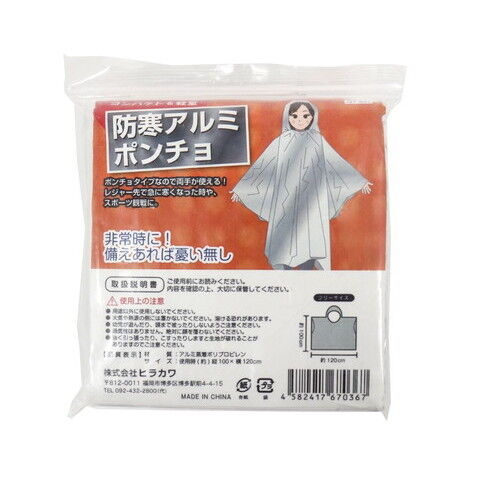 ヒラカワ 防寒アルミポンチョ フリーサイズ QT-531 【返品種別A】