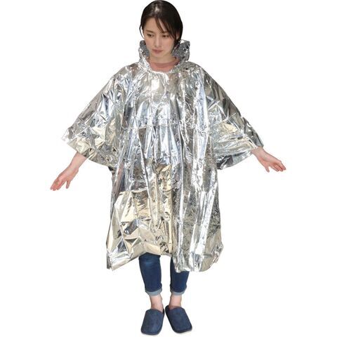 防風・防水機能に加え保温効果もある非常用のアルミポンチョ。