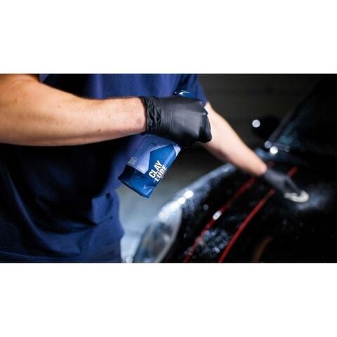 一度に1枚のパネルにたっぷりとスプレーし、お手持ちのクレイ(粘土)で優しく擦ってください。