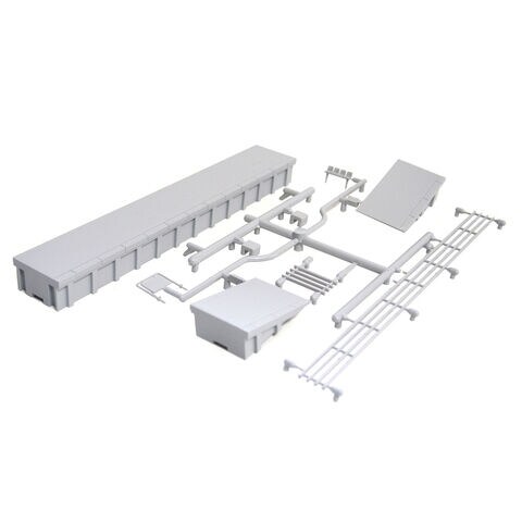 ホーム1本 スロープ左右セット1組 246mm柵1本 ホーム端柵1本 駅名標1個 ベンチ1個 接続フック2個 ラベル(点字ブロック・駅名標)※お客様にてカット