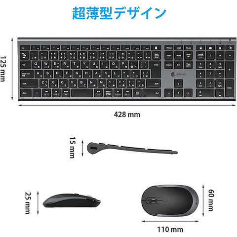 iClever(アイクレバー) ワイヤレスキーボード&マウスセットIC-BK23Combo(グレーブラック) E03-0131J-63 【返品種別A】