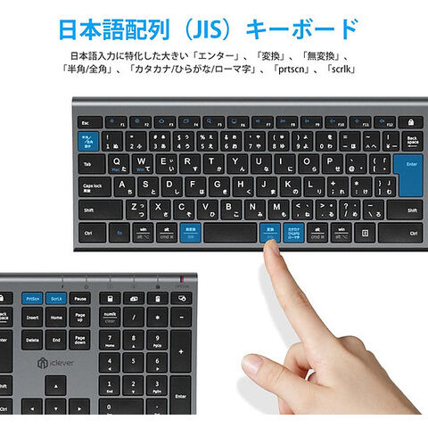 日本語入力に特化した大きい「エンター」、「変換」、「無変換」、「半角/全角」、「カタカナ/ひらがな/ローマ字」、「prtscn」、「scrlk」。