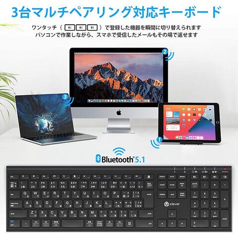 iClever(アイクレバー) Bluetoothキーボード IC-BK23 (ブラック) E03-0131J-54 【返品種別A】