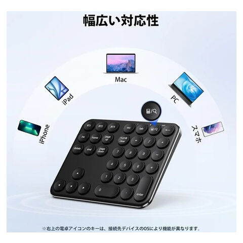 ※本製品はBluetooth接続式テンキーです。接続先デバイスにBluetooth3.0以降が搭載されていることを、予めご確認ください。