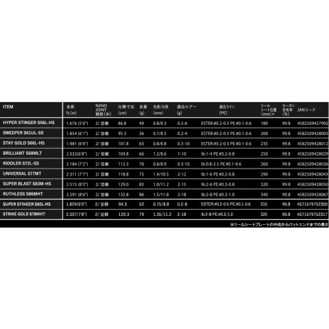 Length:7’7” Lure:2-12g Line:(lb) 1-6(PE) #0.2-0.8