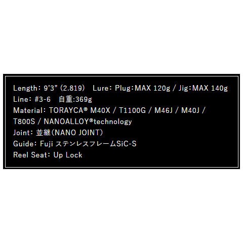 Length: 9’3” (2.819) Lure: Plug:MAX 120g / Jig:MAX 140g