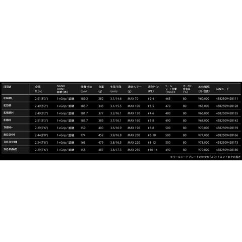 Length:8’3” Lure:MAX160g Line(PE):#5-8 Weight:389g DRAG