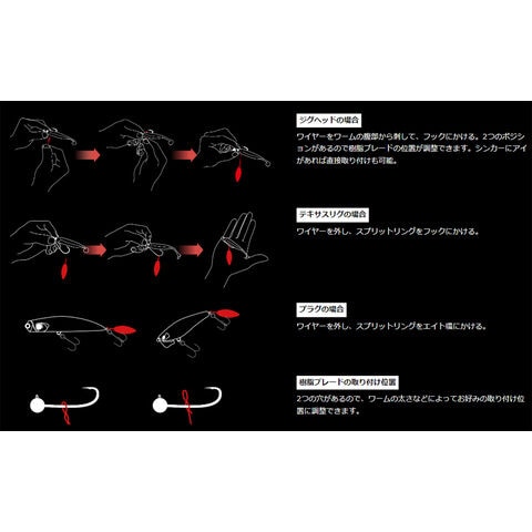 ジグヘッドやオフセットフック・プラグなどに取り付けて使用していただけます。