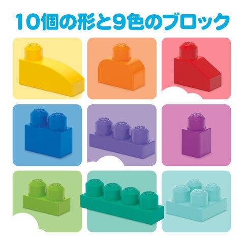 適度な固さの特別に大きなサイズのブロックは、小さなお子さまでも重ねたり、はずしやすい設計。