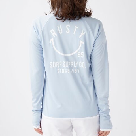 RUSTY レディース バックロゴラッシュガード(ブルー・サイズ:L) 923460-BLU-L 【返品種別A】