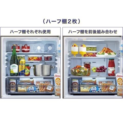 ◆ハーフ棚で冷蔵室内をレイアウト