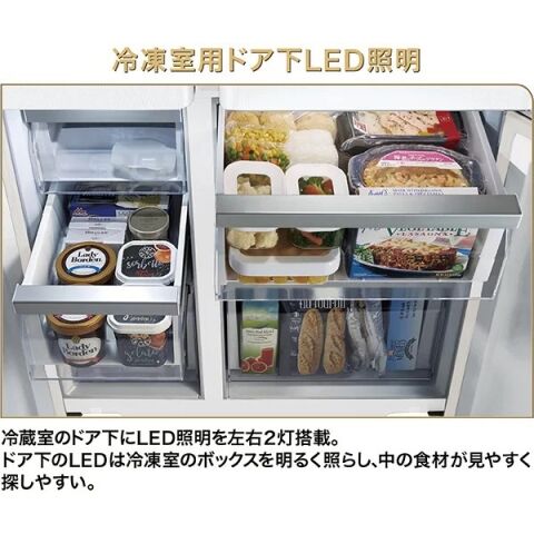 冷蔵室のドア下にLED照明を左右2灯搭載。