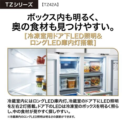 冷蔵室のドア下にLED照明を左右2灯搭載。