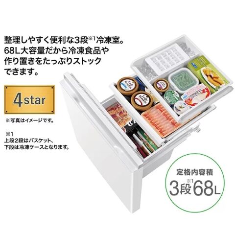 68L大容量だから冷凍食品や作り置きをたっぷりストックできます。