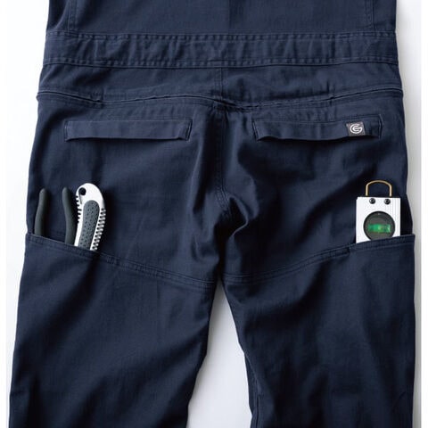 長きにわたり支持の多い綿素材に今の時代の定番機能であるストレッチ性もしっかりある中厚の生地で、ハードなワークシーンに最適。