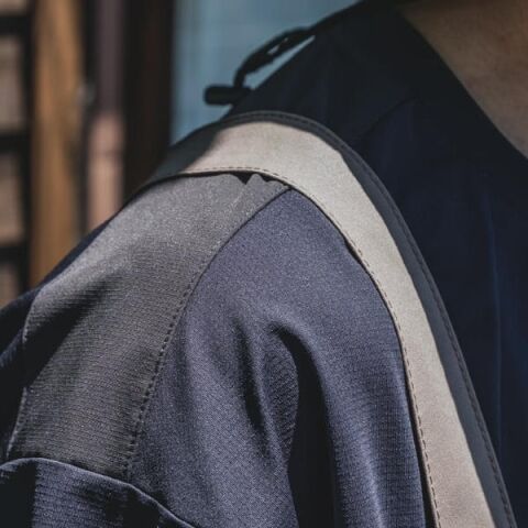 生地も特徴的で、軽量さと通気性もあり、季節を問わず着用可能。