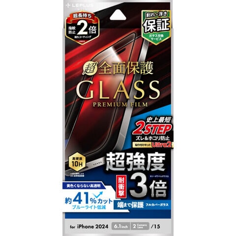 MS Products iPhone 16用 液晶保護ガラスフィルム「GLASS PREMIUM FILM」 全面保護 超強度・耐衝撃3倍 ブルーライトカット LEPLUS NEXT LN-IM24FGTB 【返品種別A】のレビュー