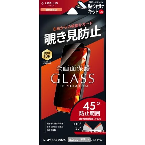 MS Products iPhone 17/iPhone 17 Pro/iPhone 16 Pro ガラスフィルム「GLASS PREMIUM FILM Lite」 覗き見防止180° LEPLUS LN-IM25FGLN 【返品種別A】