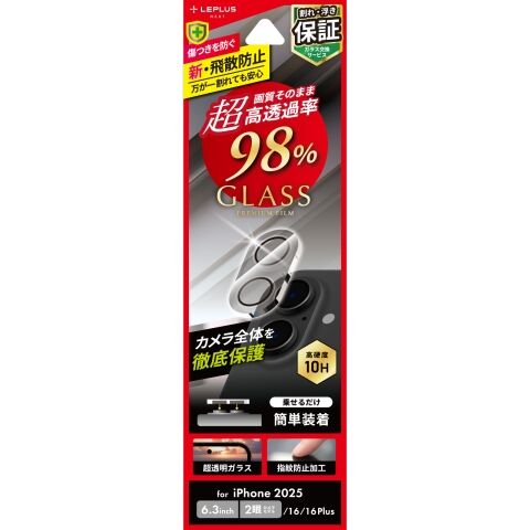 MS Products iPhone 17/iPhone 16/16 Plus レンズ保護ガラスフィルム「GLASS PREMIUM FILM」全面保護 超高透過 約98% LEPLUS LN-IM25FGLENC 【返品種別A】