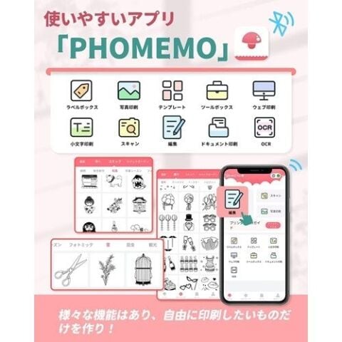 スマートフォンの専用アプリ「Phomemo」で簡単にワイヤレス接続することができます。