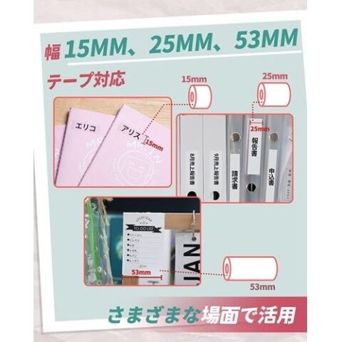 50mmの印刷用紙を印刷できるだけでなく、整理収納に適した15mmと25mmのラベルも印刷できます。