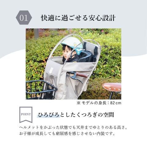 運転席側から頭上が開くので、停車時に自転車に乗ったままお子さまのお世話ができます。