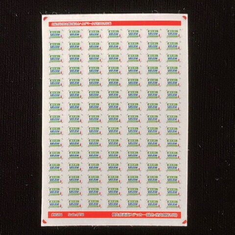 世田谷車両のNゲージ用車両パーツ、優先席両面ステッカー(緑色・室内側貼り用)です。