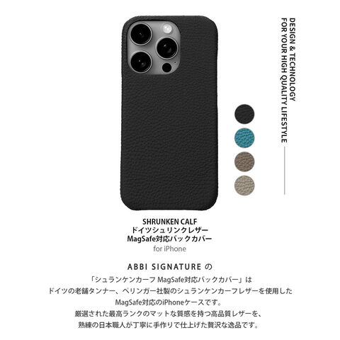 「シュランケンカーフMagSafe対応バックカバー」はドイツの老舗タンナー、ペリンガー社製のシュランケンカーフレザーを使用したMagSafe対応のiPhoneケースです。