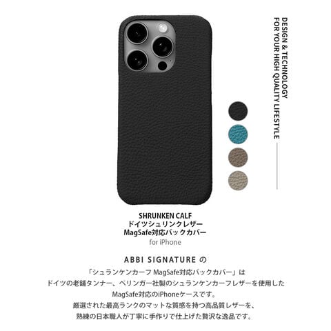 「シュランケンカーフMagSafe対応バックカバー」はドイツの老舗タンナー、ペリンガー社製のシュランケンカーフレザーを使用したMagSafe対応のiPhoneケースです。