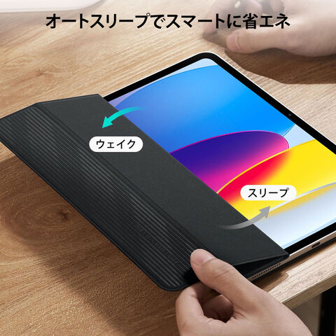 内蔵マグネットにより、フロントカバーの開閉でiPadのスリープ/起動が自動で切り替わります。