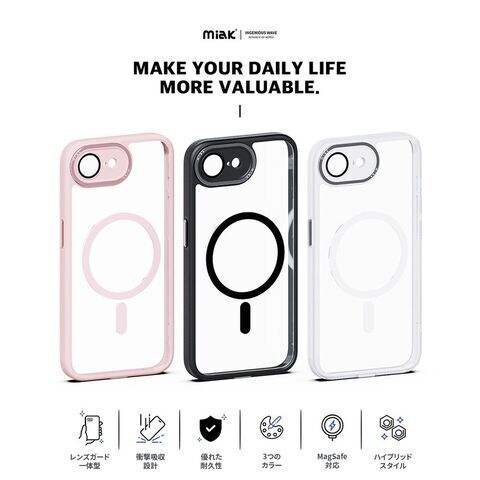 miak iPhone 16e用 レンズガード一体型MagSafeアクセサリ対応クリアケース(ピンク) MA27596I16E 【返品種別A】