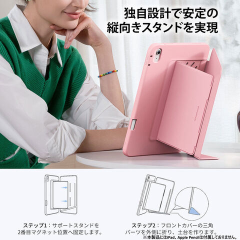 ESR「Flip ペンホルダー付きハイブリッドケース」は、縦横どちらのスタンド使用にも対応した、安定性に優れた多機能iPadケースです。