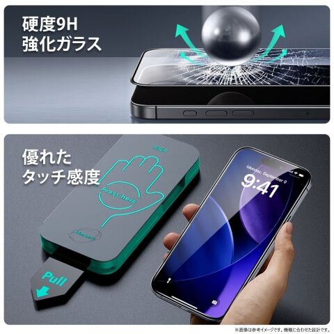 硬度9Hの強化ガラスフィルムが、日常の生活傷からディスプレイを保護します。