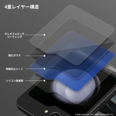 シリコン接着剤、飛散防止シート、強化ガラス、油分・指紋などの汚れに強いオレオフォビックコーティングの4重レイヤーで安全に長く使えます。