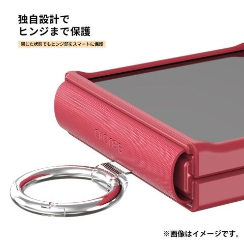 デバイスに合わせた独自の設計でヒンジ部分まで保護するリング付きケースです。