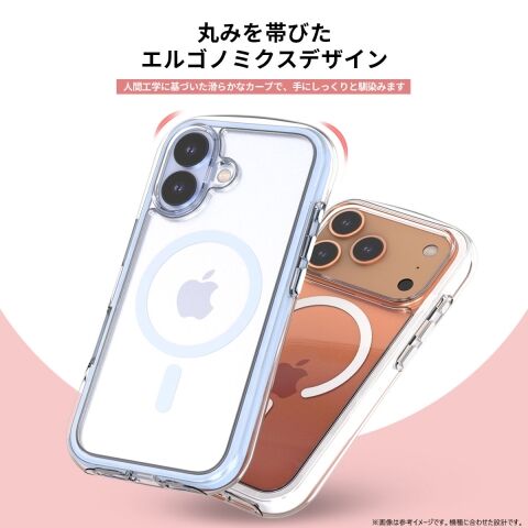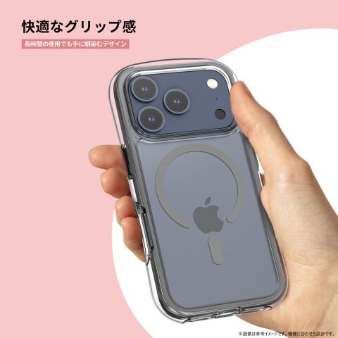 ポリカーボネートとTPUを組み合わせたハイブリッドクリアケースです。エアキャップが衝撃を吸収し、丸みのあるデザインが特徴。ミルスペック準拠の耐久性があり、MagSafeアクセサリーにも対応しています。