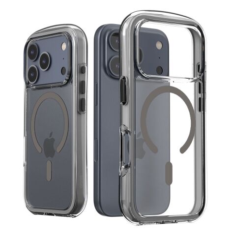 ポリカーボネートとTPUを組み合わせたハイブリッドクリアケースです。エアキャップが衝撃を吸収し、丸みのあるデザインが特徴。ミルスペック準拠の耐久性があり、MagSafeアクセサリーにも対応しています。
