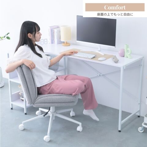 ゆったりと座れるサイズ感と、体圧をしっかり支える沈み込みすぎない硬さのクッションが、長時間の使用でも疲れにくい快適な座り心地。