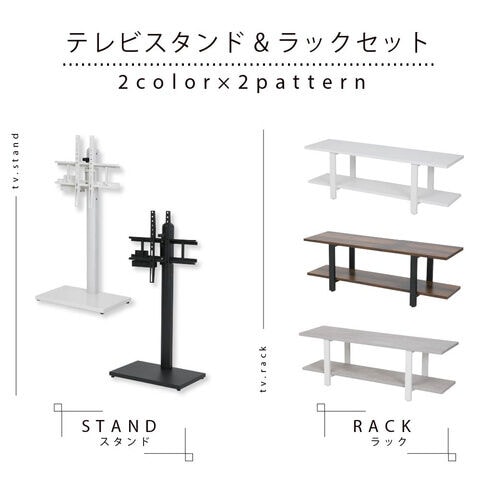 ◆壁に穴あけ不要でスタイリッシュな自立型TVスタンド。2段の収納棚が付いたオープンラックセット。